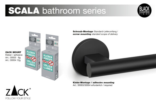 | Montaż na wkręty lub klej | Produkt montowany do ściany na wkręty lub za pomocą kleju w systemie Zack Mount System bez konieczności wiercenia otworów. Wewnątrz opakowania znajdują się standardowe kołki oraz wkręty. W przypadku montażu za pomocą kleju wymagany jest zakup odpowiedniej ilości kleju (indeks 30003 lub 30004). Klej może być stosowany na powierzchniach zarówno gładkich jak chropowatych min. beton, ceramika, płyty meblowe, glazura, drewno, szkło, wiele odmian plastiku. Wytrzymałość kleju to koło 170 kg na jeden punt montażowy. Klej nadaje się do użycia wewnątrz oraz na zewnątrz budynków – temperatura użytkowania -40 st.C do +100 st.C. Klej Zack Mount jest usuwalny. Produkt może zostać zdemontowany, a na zdecydowanej większości powierzchni nie pozostanie żaden ślad po zamontowanym produkcie. Powierzchnia, do której montujemy produkt w systemie Zack Mount powinna być stabilna, czysta, odkurzona i w razie konieczności odtłuszczona. Kleju Zack Mount nie możemy używać na ścianach pokrytych min. tapetą lub farbą. oraz powierzchniach nieprzywieralnych np. teflon czy niektóre tworzywa sztuczne jak polyetylen PE, polypropylen PP, polytetrafluoetylen PTFE. |